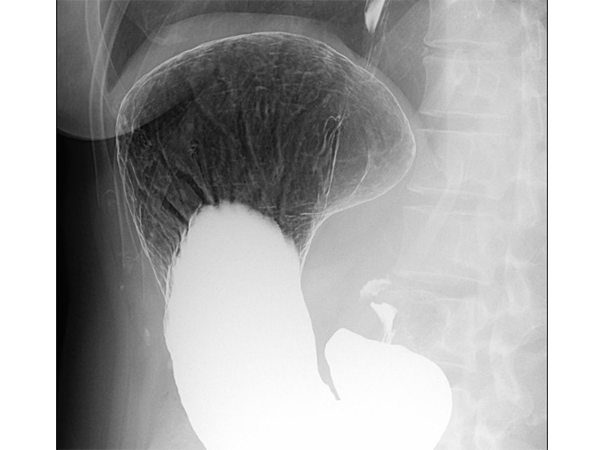 バリウムと発泡剤を飲んでいただき、食道、胃、十二指腸などの病気を調べる検査です。検査時間は5~10分程度で、胃全体の形や大きさ、病変の有無、広がりなどを調べることができます。